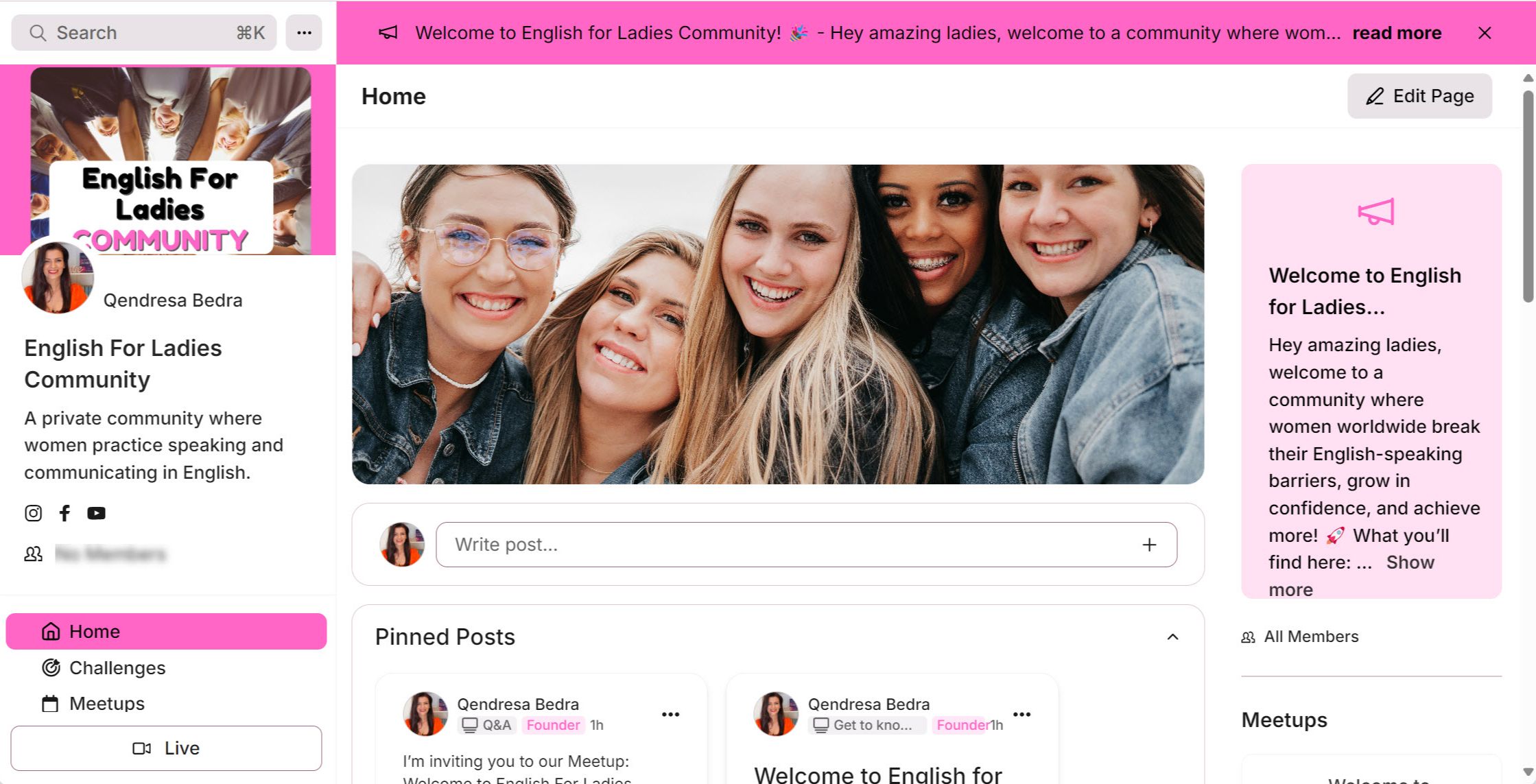 This is a free community where women practise real English conversations together.